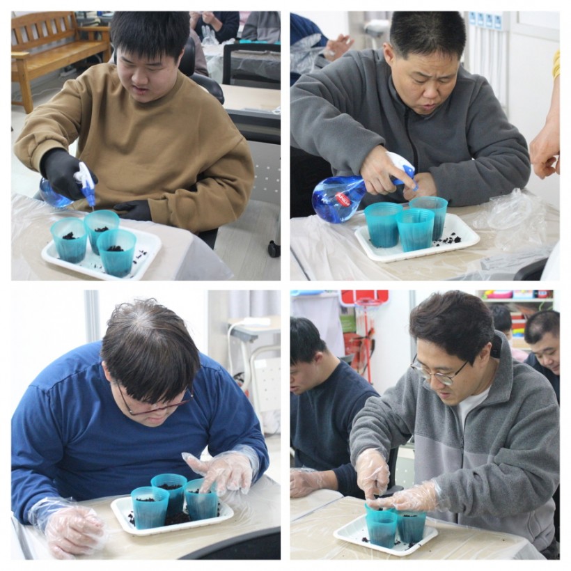 심은 포트는 프로그램실 안 ‘식물 키움 공간’으로 옮겨져, 앞으로 매일 물을 주고 변화를 관찰하며 성장의 시간을 함께할 예정입니다. 씨앗이 싹이 되고, 잎이 자라듯 이용인들의 기다림과 책임감도 함께 자라나길 기대합니다.